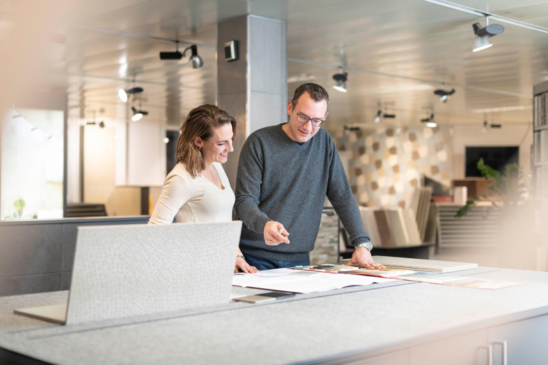 Der Markt an Baustoffen, Bodenbelägen, Natur- und Kunststeinen ist so gross, dass kaum jemand alles kennen kann. Natürlich kennen auch wir nicht alles, dennoch bieten wir ein sehr grosses Sortiment an Materialien. Als Archiktekt können Sie bei uns von einer detaillierten Beratung profitieren und verschiedene Baustoffe vergleichen. In unserem Showroom können Sie jederzeit die aktuellen Steinkollektionen prüfen und vergleichen.